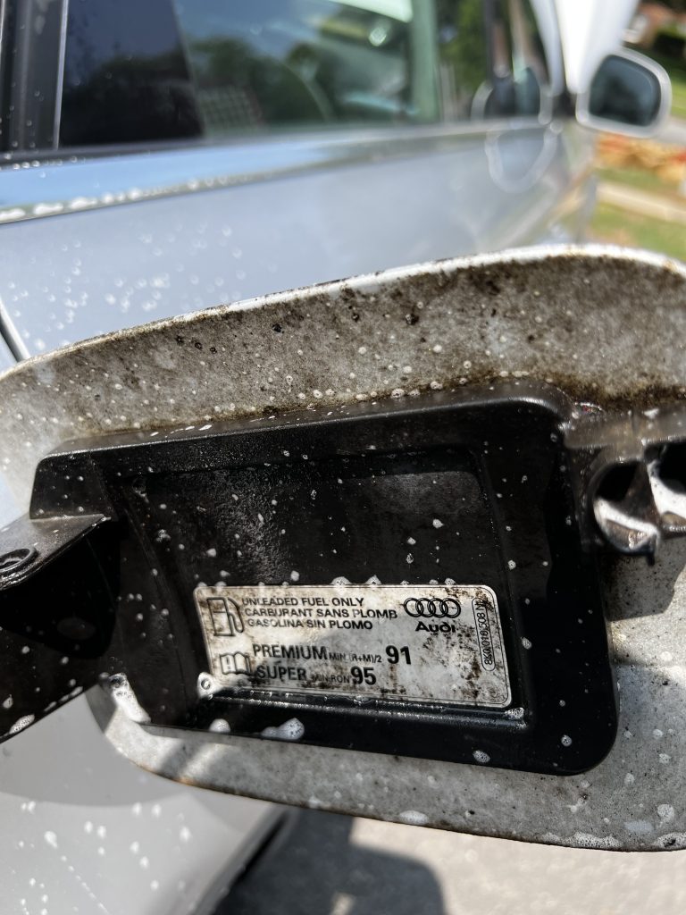 This silver Audi A4 had been parked outside and built up grime that dulled the finish and made the vehicle look tired. It also had an unpleasant surprise: mold in the fuel door/gas compartment.